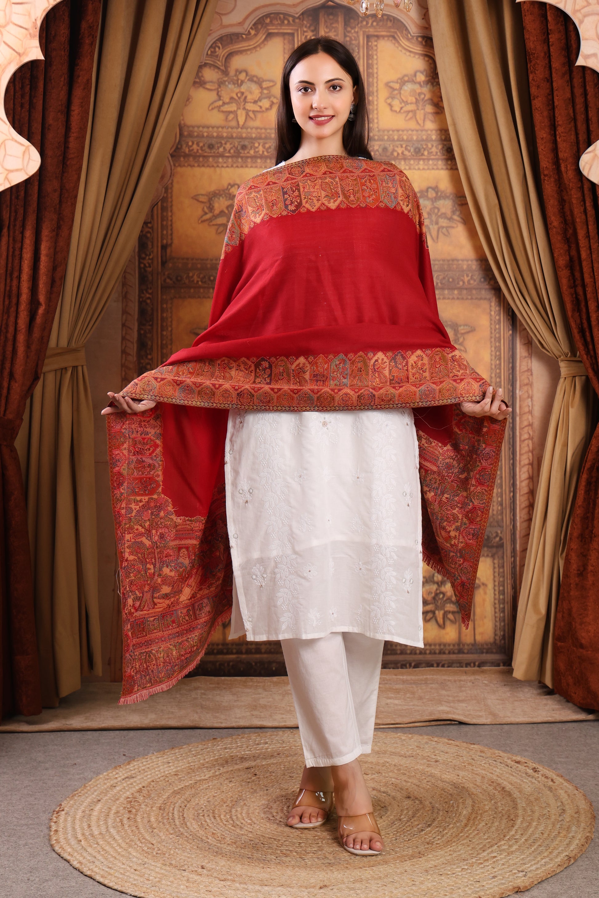 GIRRAJ PASHMINA 4 SIDE KASHMIRI EMBROIDERY SHAWL