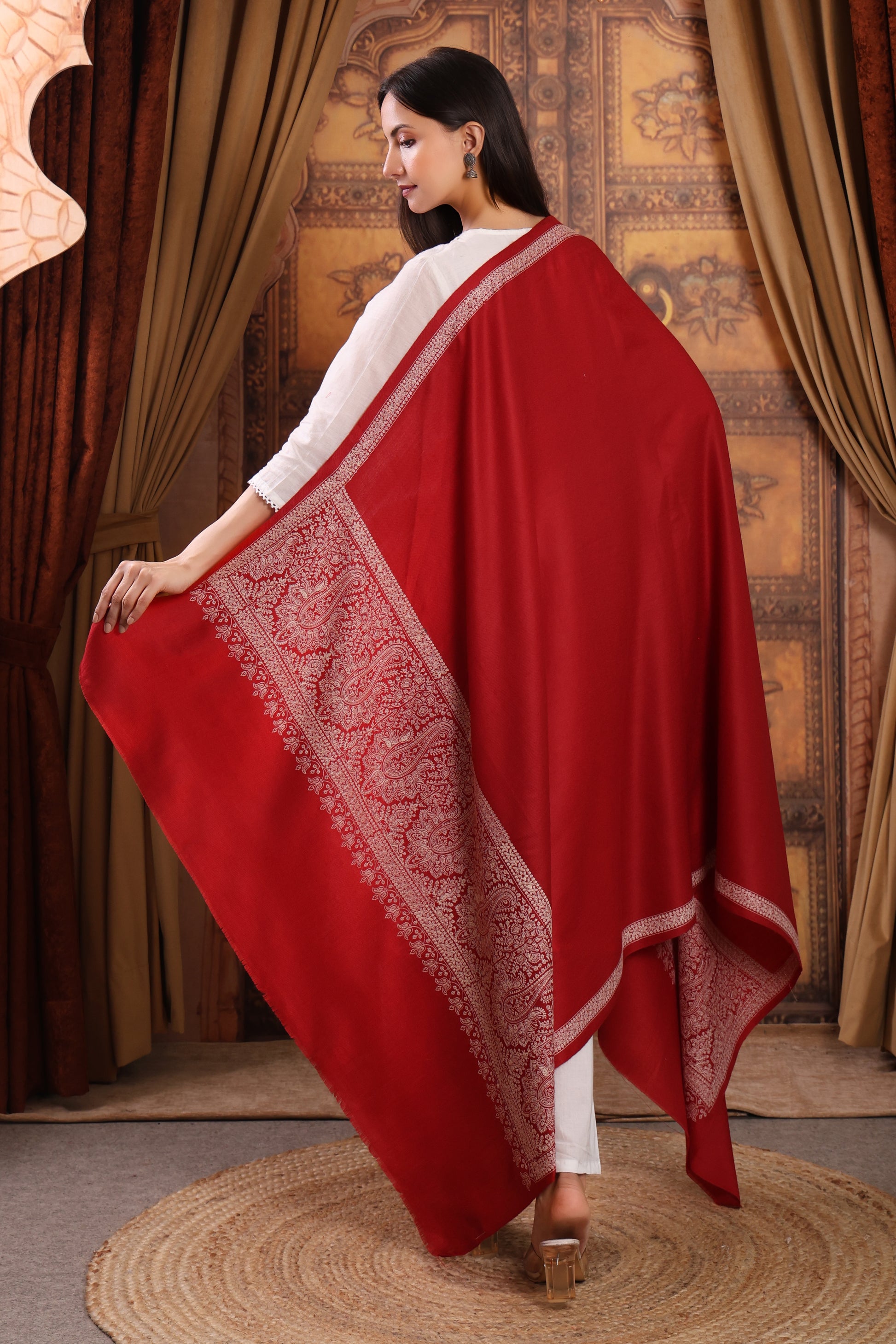 GIRRAJ PASHMINA AMBI PALLA KASHMIRI EMBROIDERY BORDER SHAWL