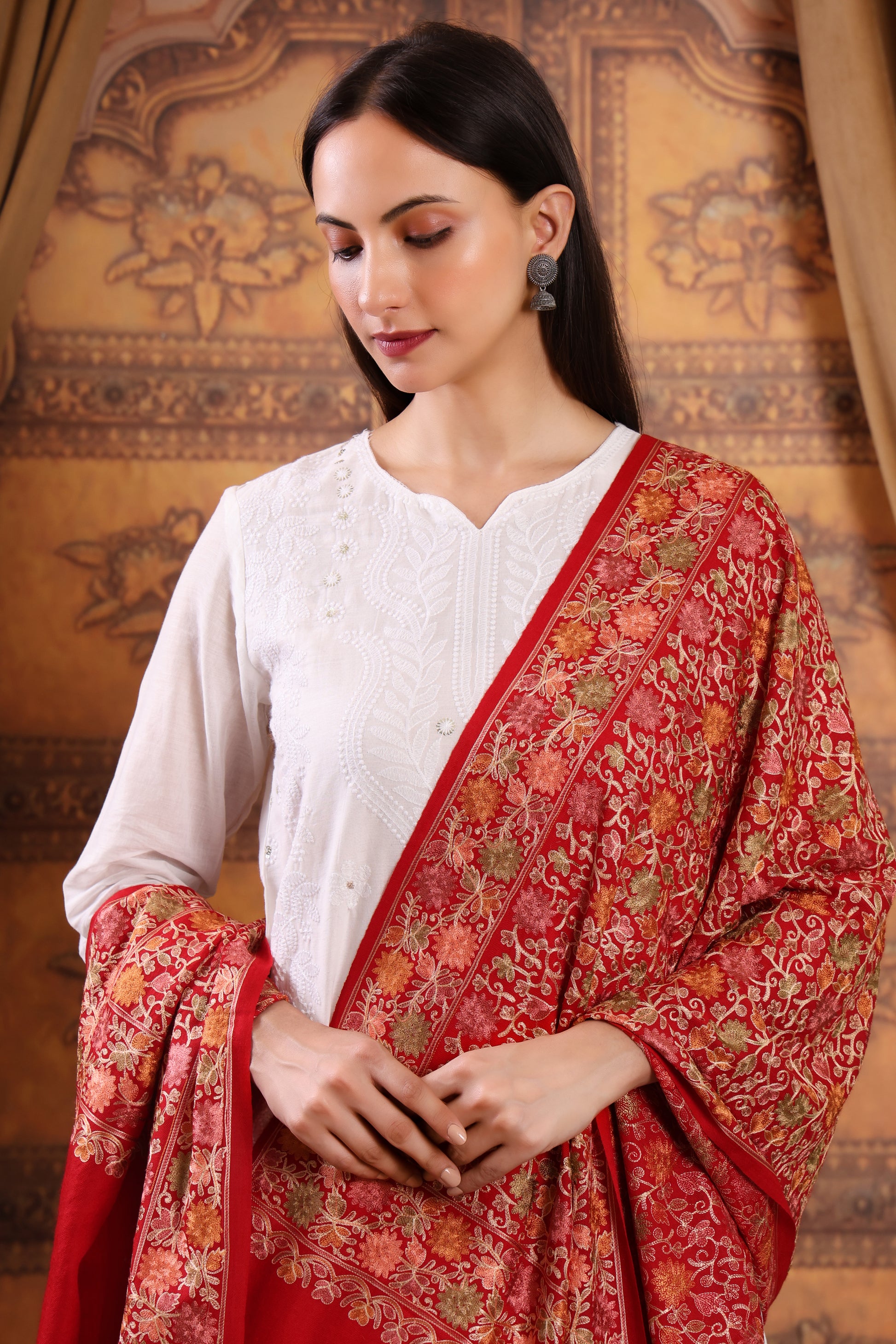 GIRRAJ PASHMINA RED COLOUR FULL EMBROIDERY STOLE